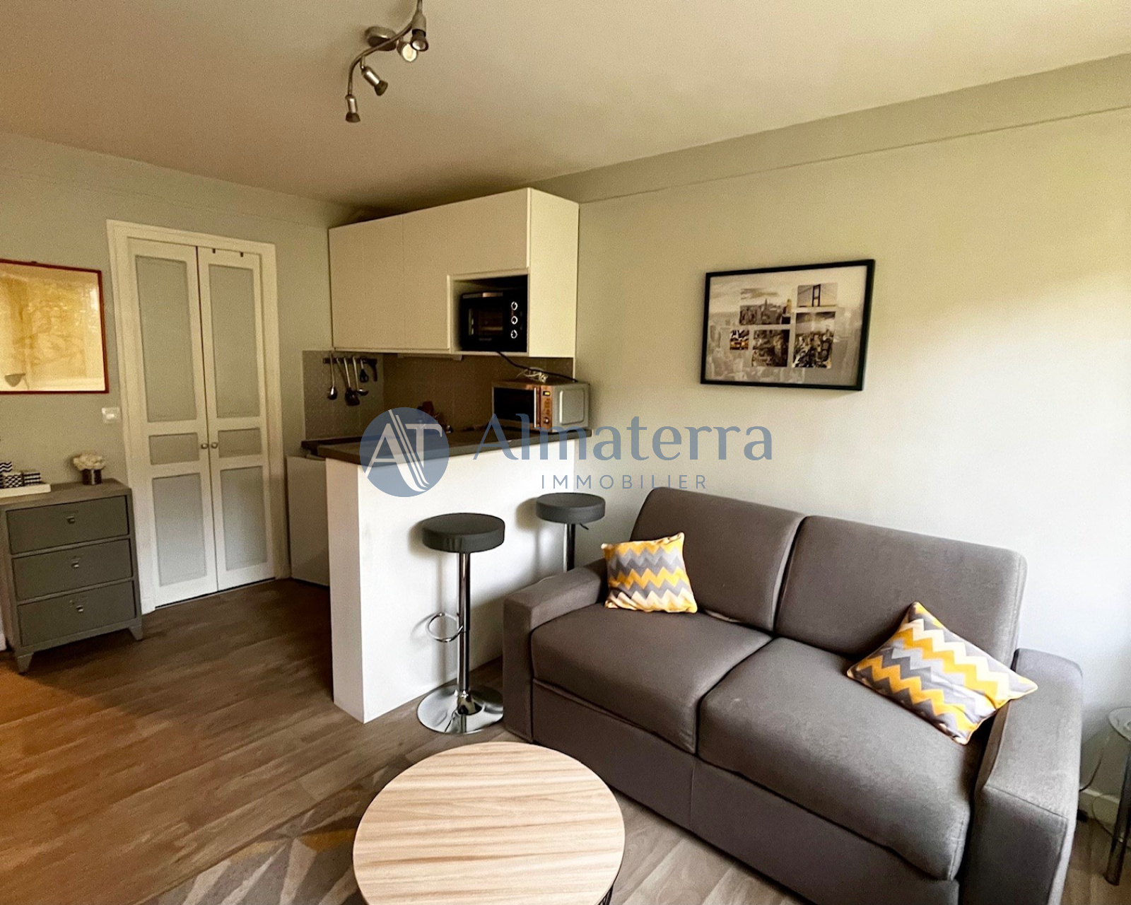 Rue Cortambert - L’agence Almaterra Immobilier vous propose ce studio meublé de 20m² au RdC dans un immeuble récent de bon standing. Entrée avec espace dressing, pièce de vie, kitchenette aménagée et équipée, salle d’eau avec WC. En parfait état. Très calme. Idéalement situé à proximité immédiate des commerces et transports. Immeuble sécurisé avec gardien. Chauffage collectif. Libre immédiatement.