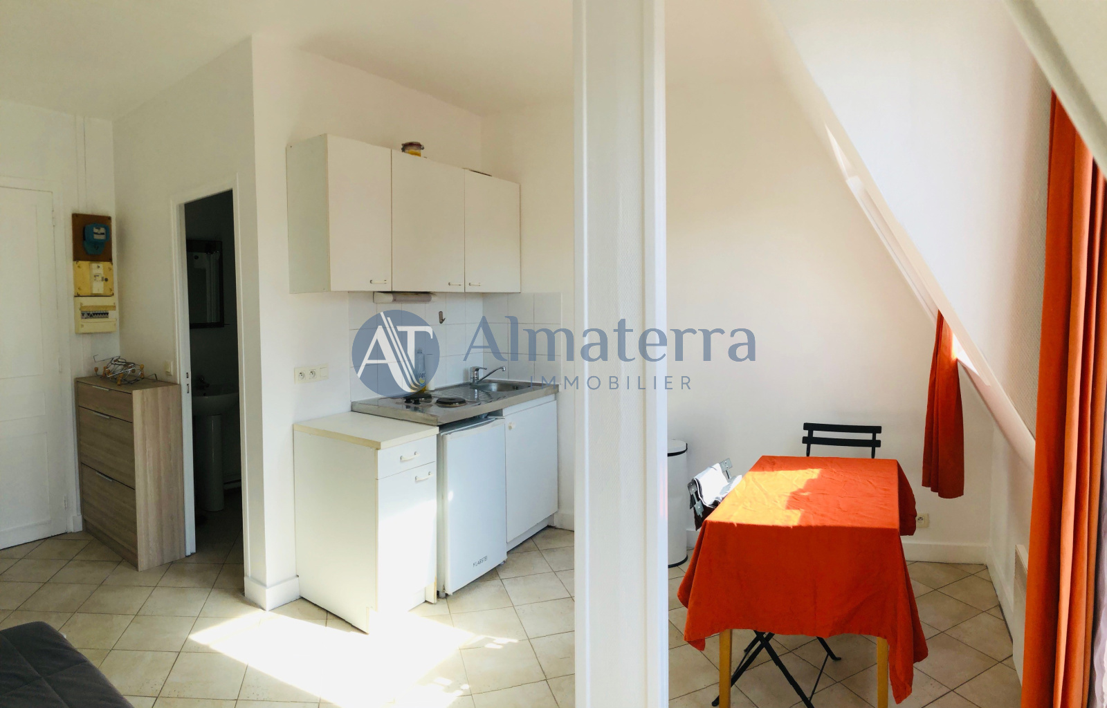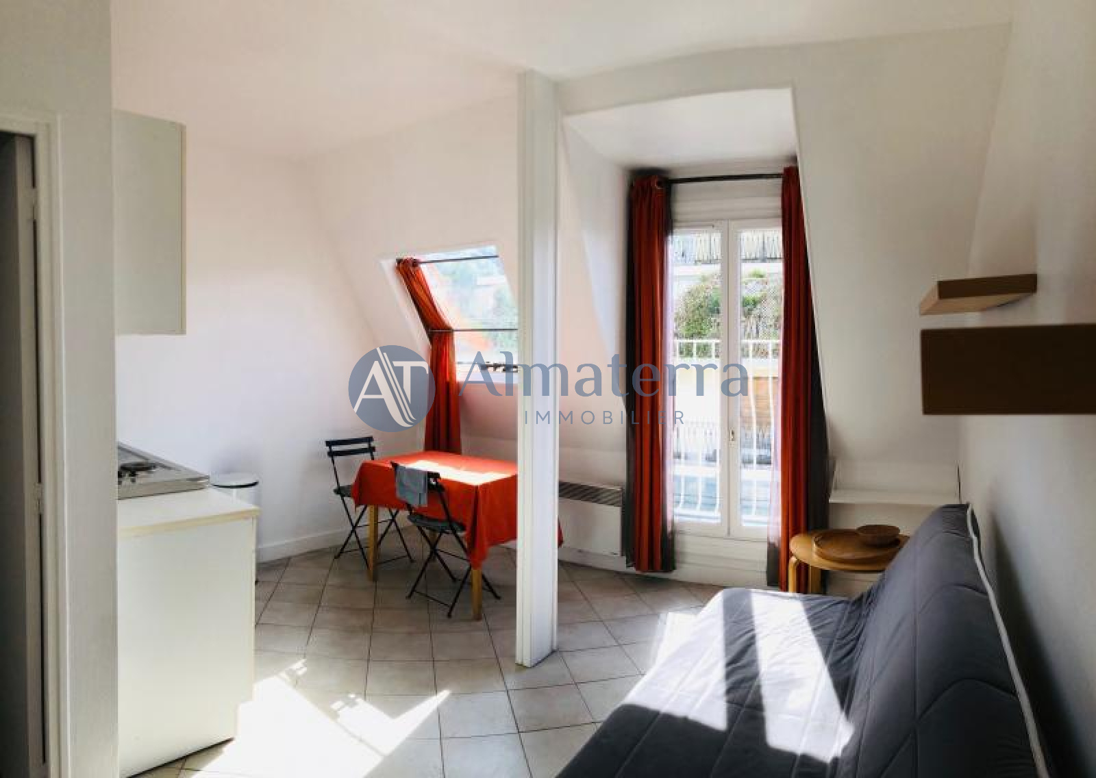 Rue Desbordes Valmore L’agence Almaterra Immobilier vous propose à la location ce studio meublé de 20m² au 5ème étage sans ascenseur dans un immeuble ancien de bon standing. Pièce à vivre, cuisine ouverte, aménagée et équipée, salle d’eau avec WC.En très bon état, calme et lumineux. Proximité immédiate des commerces et transports. Immeuble sécurisé digicode / interphone.