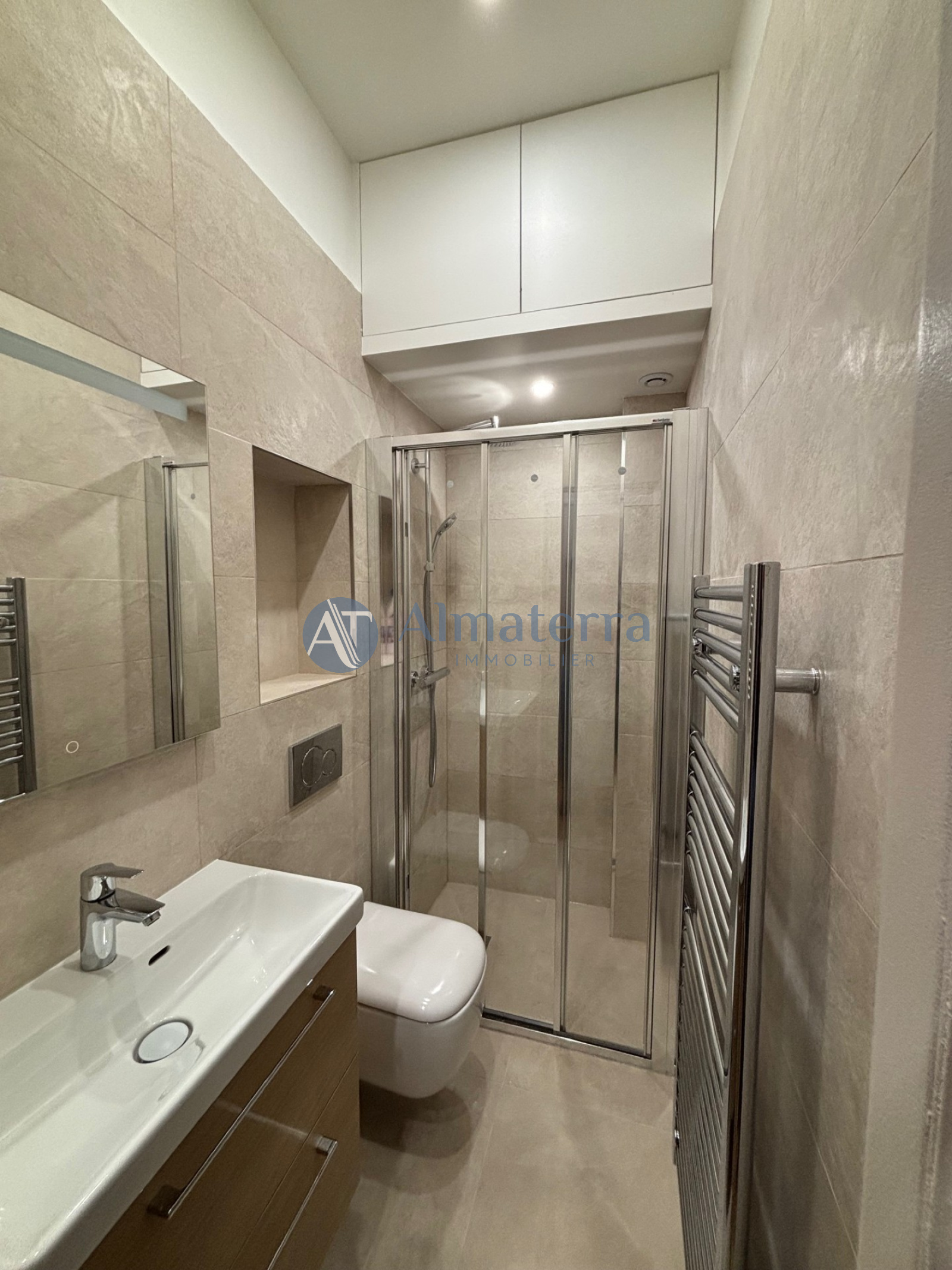 L’agence Almaterra Immobilier vous propose à la location ce studio de 18m² entièrement refait et équipé au rez-de-chaussée dans un très bel immeuble ancien. Situé rue François Millet, il se compose d'une pièce à vivre avec de nombreux rangements, d'une cuisine aménagée et équipée, d'une salle d’eau avec WC. Immeuble sécurisé avec gardien.