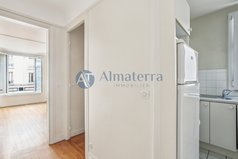 Au 5ème étage avec ascenseur d’un immeuble ancien avec gardien, cet appartement se compose d’une entrée, d’un séjour, d'un dégagement avec rangements, d’une cuisine indépendante, d’une chambre, d’une salle de bain et d’un WC séparés.