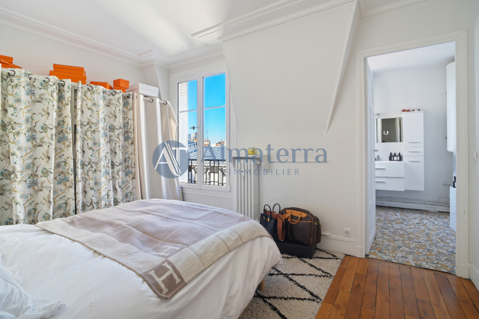 Village d'Auteuil - L'agence Almaterra Immobilier vous propose, au sein d'une villa privée et sécurisée, ce bel appartement familial d'une surface de 89 m² (86.3m² Carrez) au 7ème étage avec ascenseur d'un immeuble ancien de bon standing avec gardien à demeure. Idéalement situé à deux pas du marché d’Auteuil et à proximité immédiate des commerces, cet appartement se compose d’une entrée, d'un double séjour, d’une cuisine séparée, d’une suite parentale avec salle de bain et dressing, d’une chambre avec salle de douche, d'un WC séparé. Appartement très lumineux. Calme absolu. Une cave complète ce bien. Possibilité d’acquérir un box fermé en sus du prix de vente.