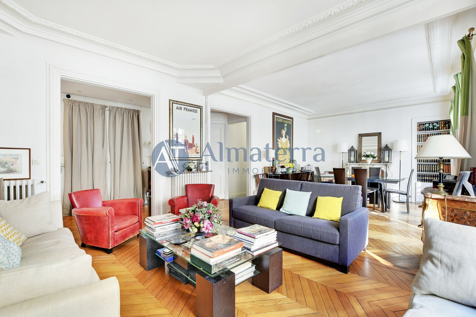 Place de Mexico. L’agence Almaterra Immobilier vous propose cet appartement familial 5 pièces de 106 m² Carrez situé au 3ème étage avec ascenseur dans un immeuble ancien de bon standing. Il se compose d’une entrée, d’un double séjour avec balcon, d’une cuisine indépendante, aménagée et équipée, de trois chambres, d’une salle de bain avec WC et d’une salle d’eau avec WC. Appartement en bon état disposant de beaux volumes. Une double cave ainsi qu’un débarras complète ce bien. Possibilité d'acquérir une chambre de service au 6ème étage, accessible par ascenseur. Sectorisation Janson de Sailly. Charme de l’ancien. Excellente situation.