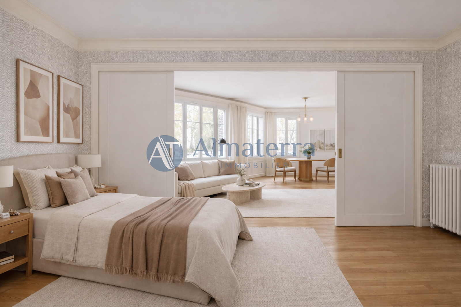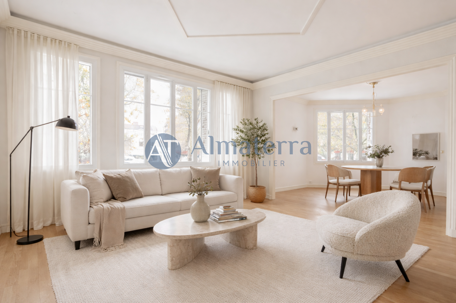 Auteuil - L'agence Almaterra Immobilier vous propose à la vente ce très bel appartement familial 6 pièces de 151,2m², en étage, avec ascenseur dans un immeuble ancien de bon standing. Idéalement situé à deux pas du marché d’Auteuil et à proximité immédiate du Bois de Boulogne, cet appartement se compose d’une grande entrée avec dressing, d’une triple réception, d’une cuisine dinatoire, aménagée et équipée, de trois chambres (possibilité quatre) d’une salle de bains, d'une salle d'eau, d'une buanderie et de deux WC. Appartement très lumineux. Aucun vis à vis. Nombreux rangements. Possibilité d'acquérir un parking en sus du prix de vente.